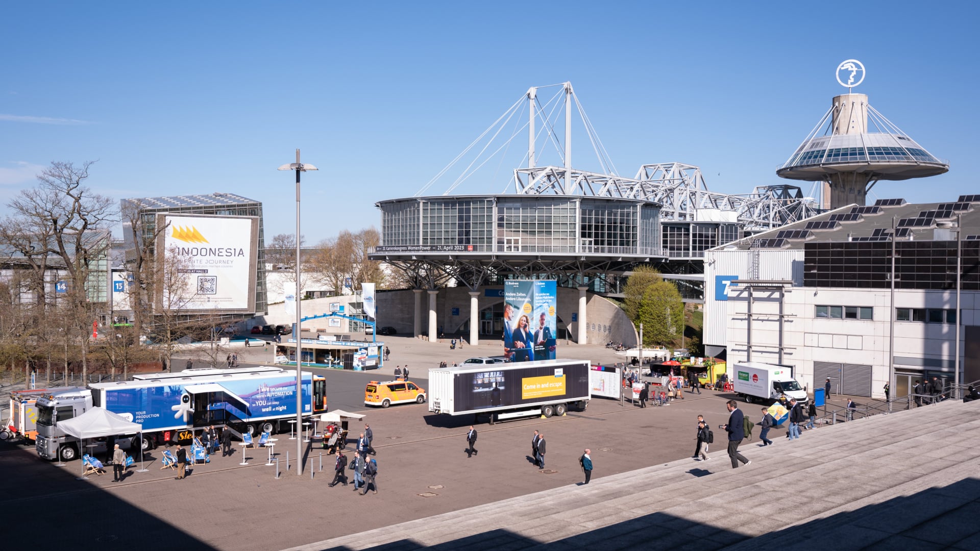 In addition, the square can be easily connected to the surrounding halls and/or conference areas. A neighbouring tree-lined avenue also invites you to set up food trucks for your event or simply place outdoor lounge furniture on the surrounding meadow areas to linger. The former Telekom cube also offers sufficient space for advertising banners or projection surfaces for live broadcasts in subdued evening light.