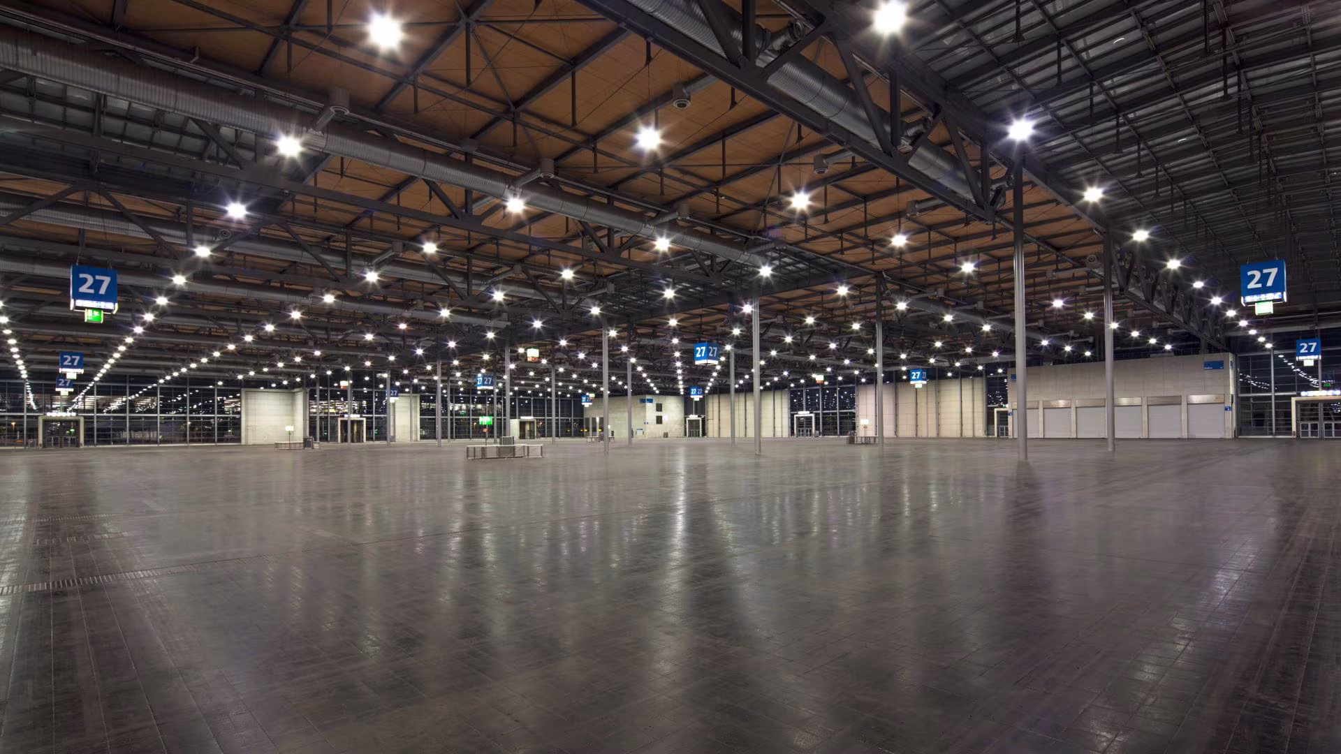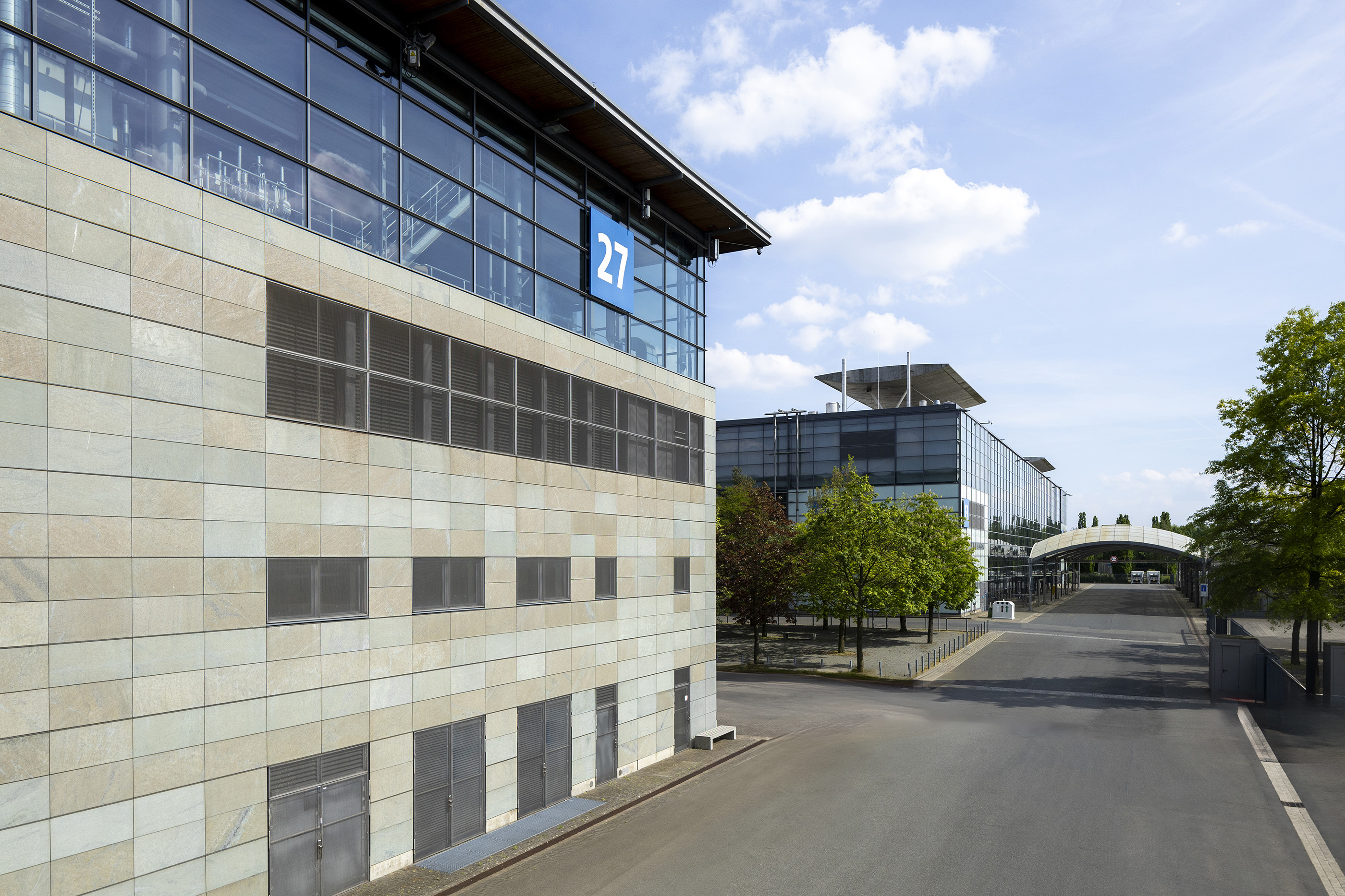 Hall 27 along the western fringe of the exhibition grounds is a true giant. With a gross floor space of 31,100 m² (roughly 335,000 ft²), it is our biggest exhibition hall by far. Its sheer size and other key features, such as its own entrance lobby, automatic lift gates, well-lit interior and the very high load-bearing capacity of its floor, mean it’s ideally suited for the requirements of major events.